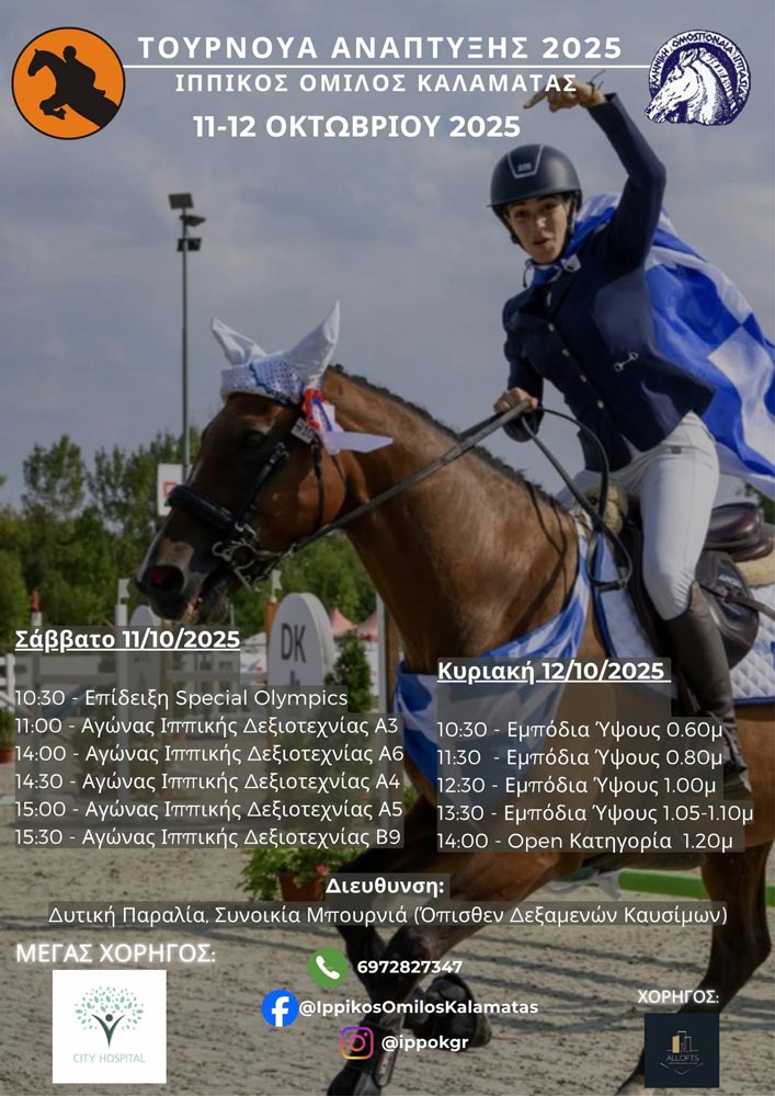 Η κλινική City Hospital, στις 11-12 Οκτωβρίου, είχε την τιμή να υποστηρίξει την ασφαλή διεξαγωγή του ΤΟΥΡΝΟΥΑ ΑΝΑΠΤΥΞΗΣ 2025, παρέχοντας ασθενοφόρο και εξειδικευμένο προσωπικό πρώτων βοηθειών καθ’ όλη τη διάρκεια των διήμερων αγώνων, αλλά και των προπονήσεων της προηγούμενης ημέρας.